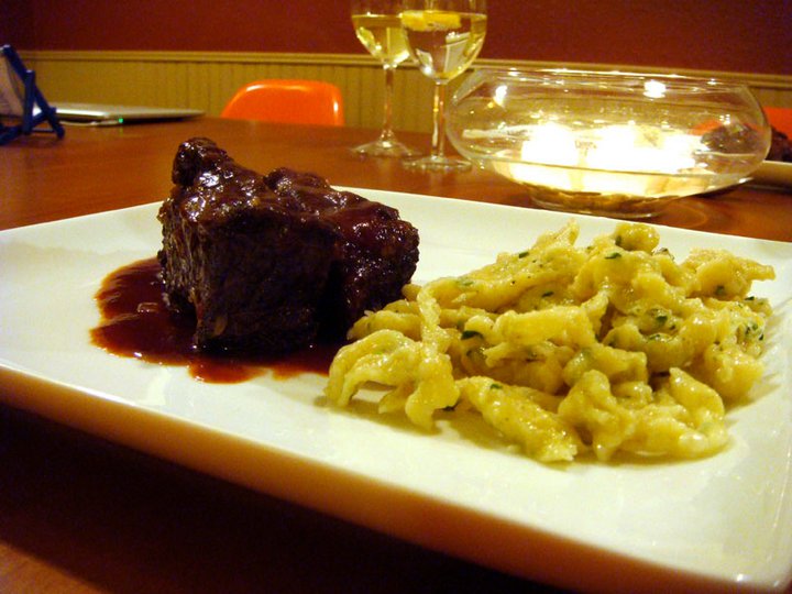 With the ribs falling-apart tender, the sauce silky and the spaetzle cooked and fluffy, the main course was finished. Silky actually doesn’t even begin to describe this sauce as it was seduction on a plate. It enrobed the short ribs, which melted as soon as you bit into them. The spaetzle was substantial, but tender and they tasted perfect after a quick swipe through the sauce as well.