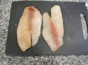 When we arrived home, K prepared the tilapia by sprinkling it with sea salt and pepper. It was good-looking fish!