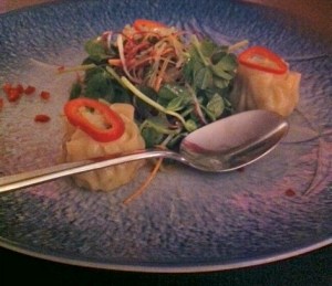 We also inhaled (as you can tell by the missing dumpling and spoon in the photo) shrimp and scallop shiu mai dumplings. They were fresh and light and devoured within seconds with that crispy baby herb salad.