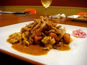 The seafood flavors really came together in this tasty dish, but in a roasty, toasty way. The chicken was tender and juicy, the shrimp and lobster sweet and supple. The sauce was a mix of warm, exotic spices that simultaneously brought out the sweetness of the yams and toned it down (if that’s possible). The pickled onions were too oniony for me, but K said they added a lively bite to the dish.