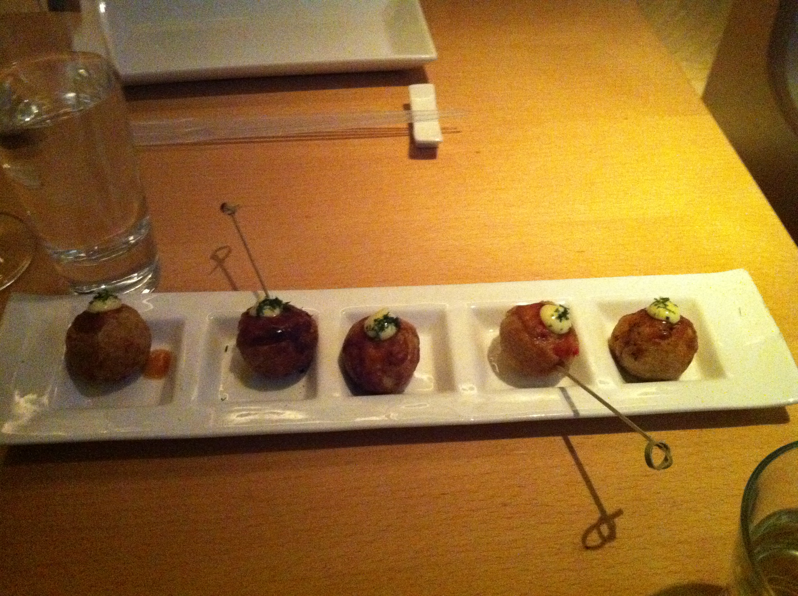 The lobster fritters were hot, perfectly fried (no grease) and accomplished an amazing feat — an impeccable, sweet chunk of lobster was encased in the batter, but the two didn’t seem to be touching one another. Delicious! And the citrus aioli added just the right amount of creamy zest.