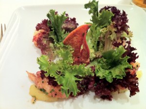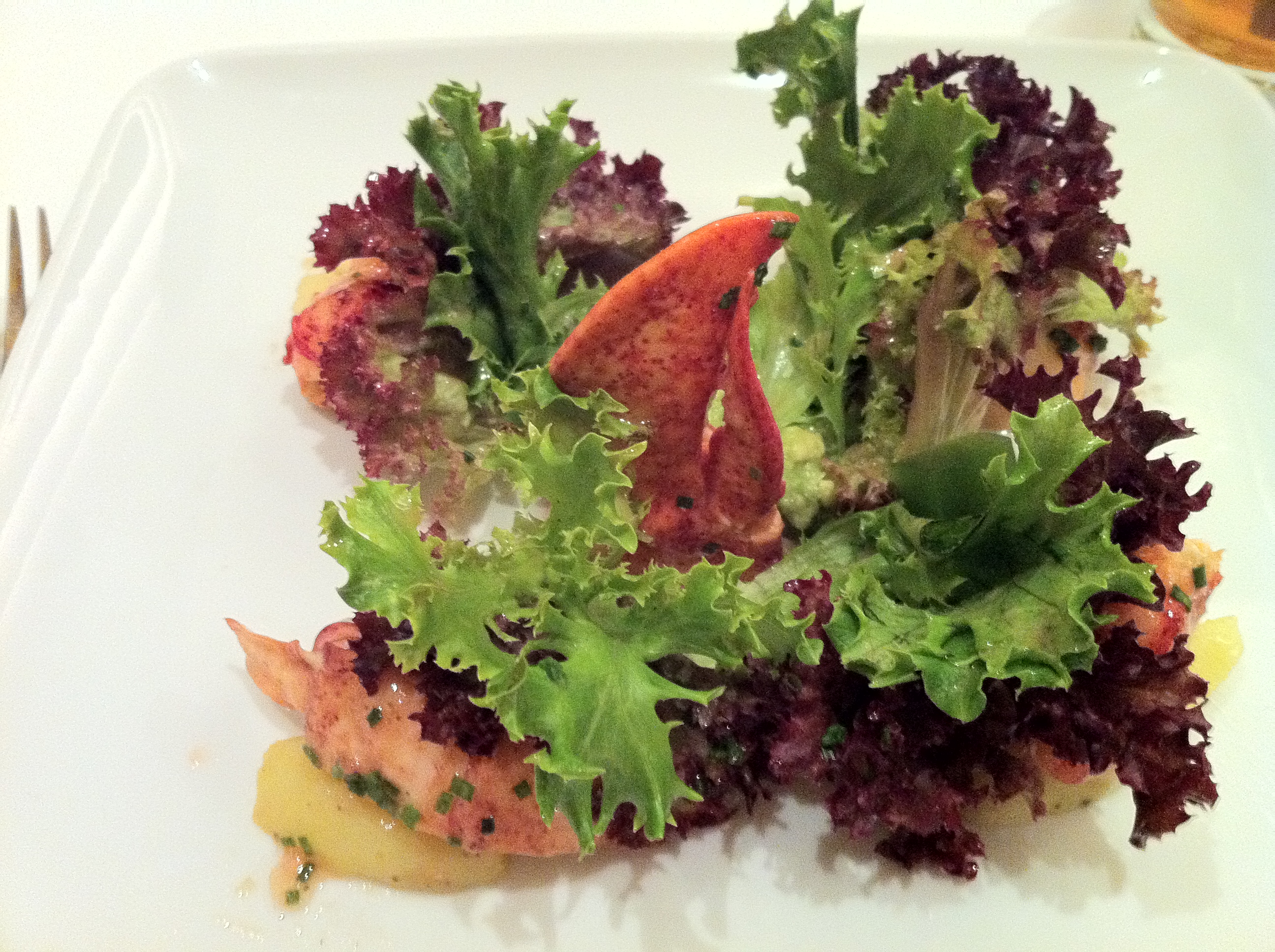 I had something I’m rarely tempted to eat — a lunch salad. But this was totally my kind of salad — a bit of fresh greenery and huge pieces of cool lobster tossed with a tart/sweet blood orange vinaigrette. Little pieces of cold fingerling potatoes were tucked amidst the lettuce. This was a salad that begged to be eaten slowly to truly enjoy each mouthful of decadent lobster.