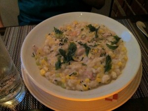 I ordered the evening’s special of chicken and rice and K got the crispy pork shoulder with creamy polenta. Each dish sounded deceptively simple, but each was so fresh and bursting with flavor we were stopped in our tracks. The chicken and rice dish was creamy and popped with green herbs and sweet corn.
