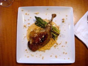 In the interest of adding some greenery, we also blanched then grilled some fresh asparagus. That was done about the time the duck was hot and golden, so it was time for a much-anticipated dinner.