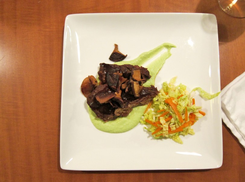 Happy 2012! I don’t really make New Year’s resolutions, but with the new year comes a wonderful opportunity to turn over a new leaf (or leaves, as the case may be). One of those changes involved me getting a new camera as a Christmas gift from K. This means new and improved food porn on the blog (see above Korean braised “short ribs” with edamame scallion puree and mushrooms from a recent Top Chef Night). Those “short ribs” are only in quotes because the co-op didn’t have actual short ribs so we made grass-fed beef chuck roast instead — nothing nefarious to see here, people.