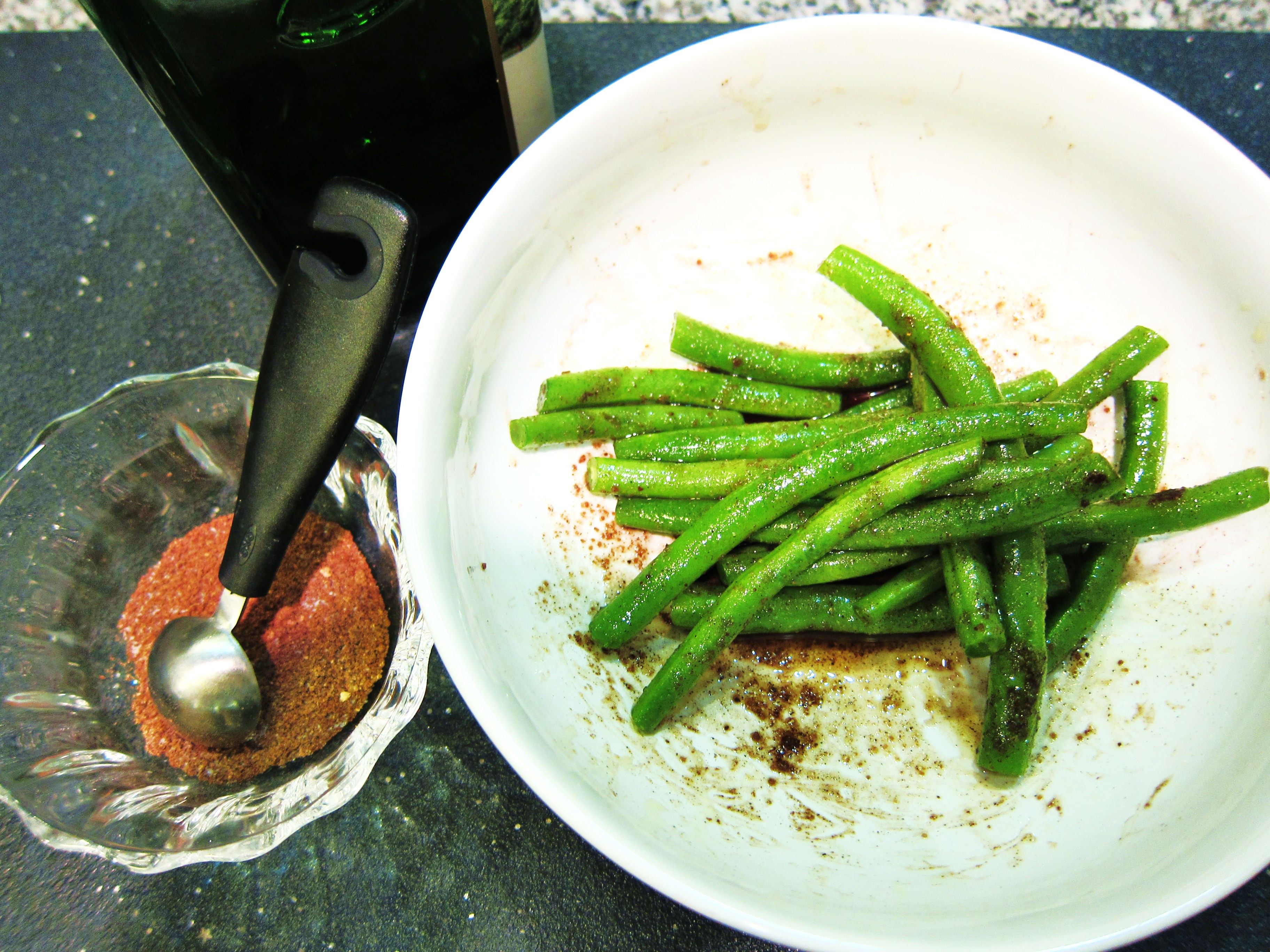 Toss the beans with oil and spice blend. Saute in hot, dry pan until slightly charred.