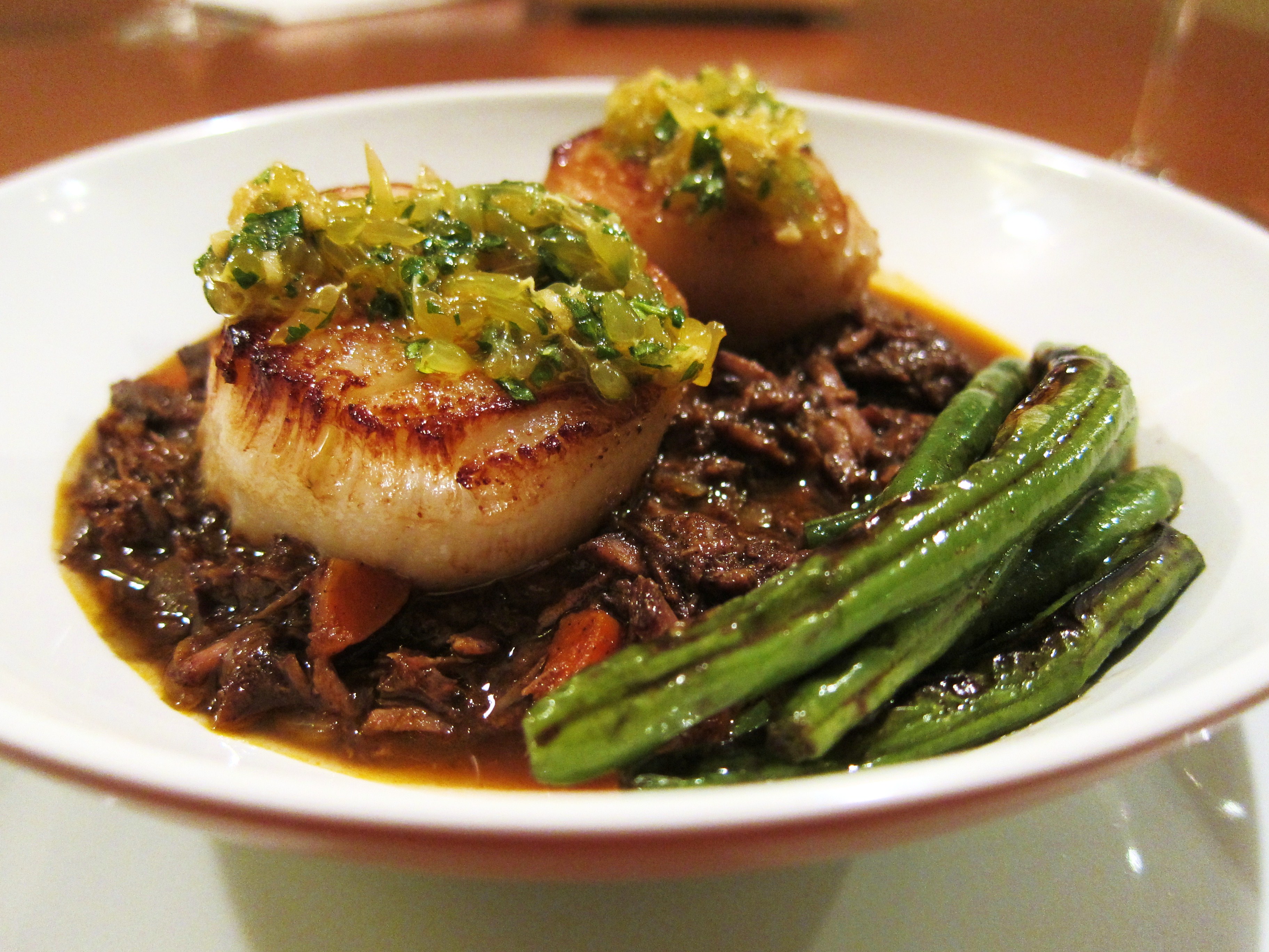 The scallops were perfectly cooked — seared with a light crust on the outside and tender, barely cooked through on the inside — and sweet. The vinaigrette was fresh, tart and had a bit of heat from the jalapeno. The beans were crisp with a nice smoky char and the stew…oh, that stew. It was so very rich and warming. It was more meat than broth and the meat just fell apart when touched with a spoon. The spices gave the broth a deep complexity and every bite was closed-eyes sigh inducing.