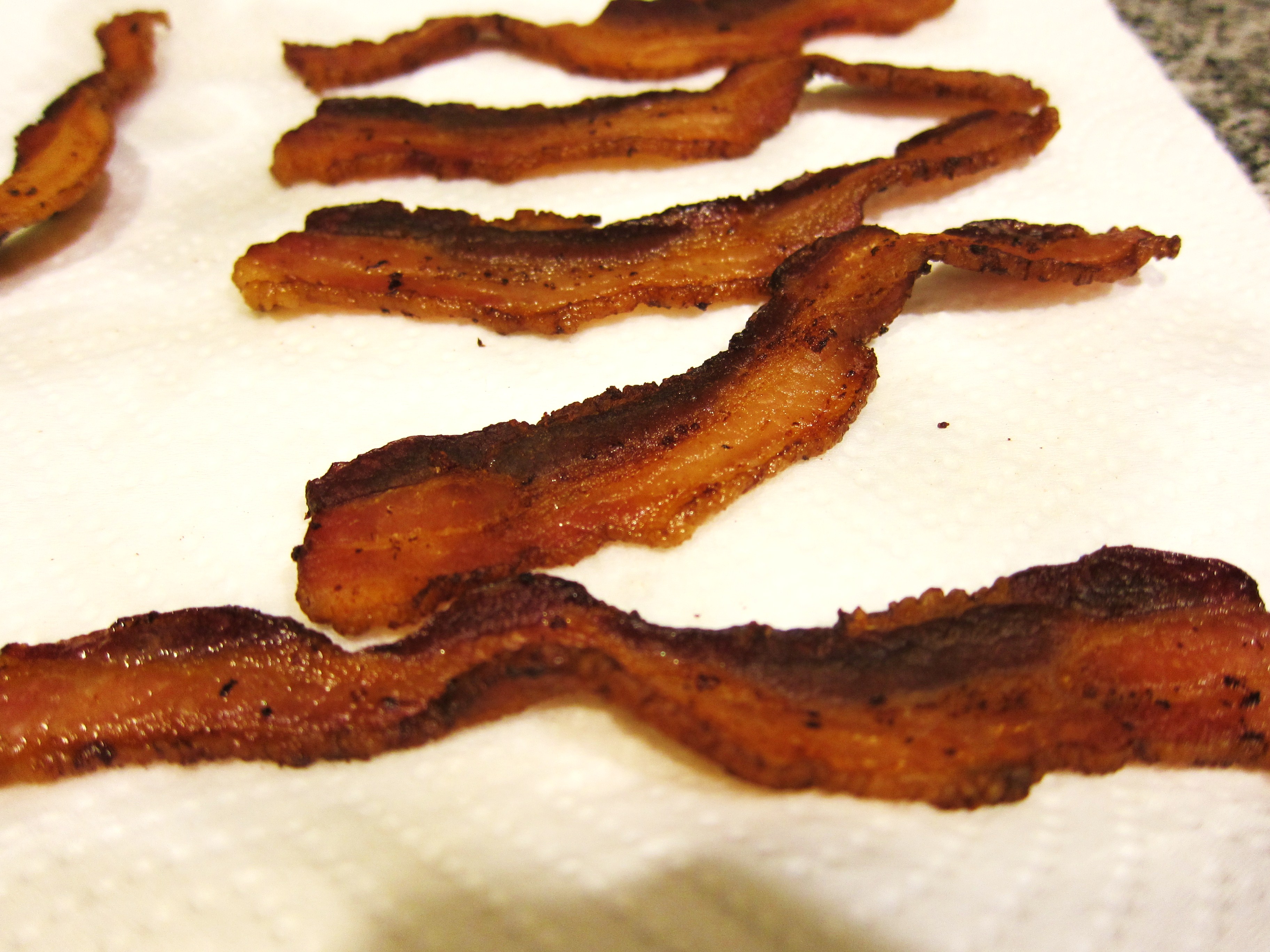First things first: The original recipe calls for two strips of bacon. Who eats just two strips of bacon?!? We made a few extra pieces.