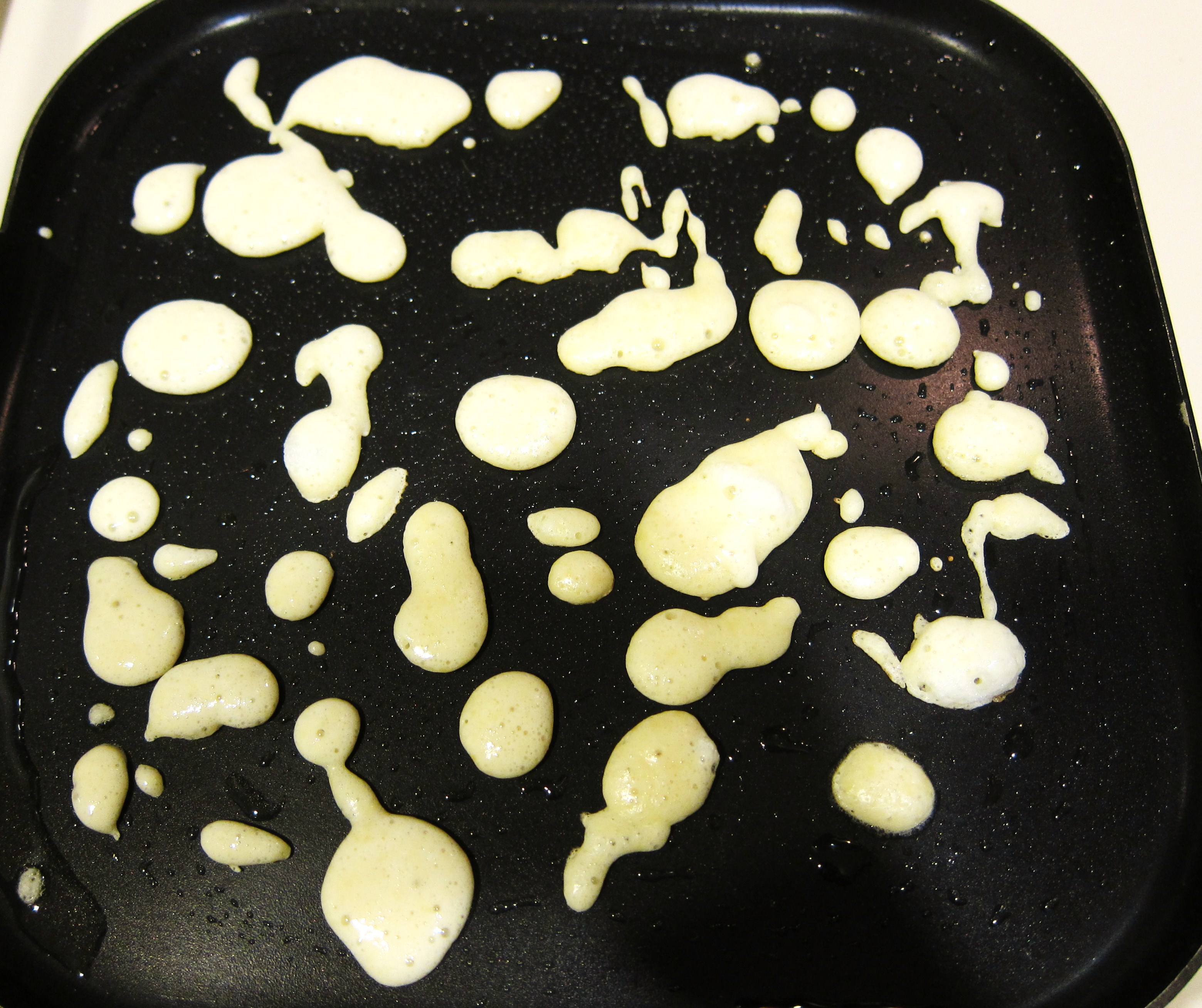 Heat a griddle or cast iron pan over medium high heat. Add a small amount of oil to bottom of griddle or pan. Drizzle small amounts of batter to form small bits. When the batter bubbles and the sides begin to brown (2-3 minutes), it’s time to flip the bits and cook the other side for 1-2 minutes. Keep the bits warm in the oven or toaster oven (at about 150 degrees) until ready to serve. The more quickly you can serve them, the more crispy the bits will be.