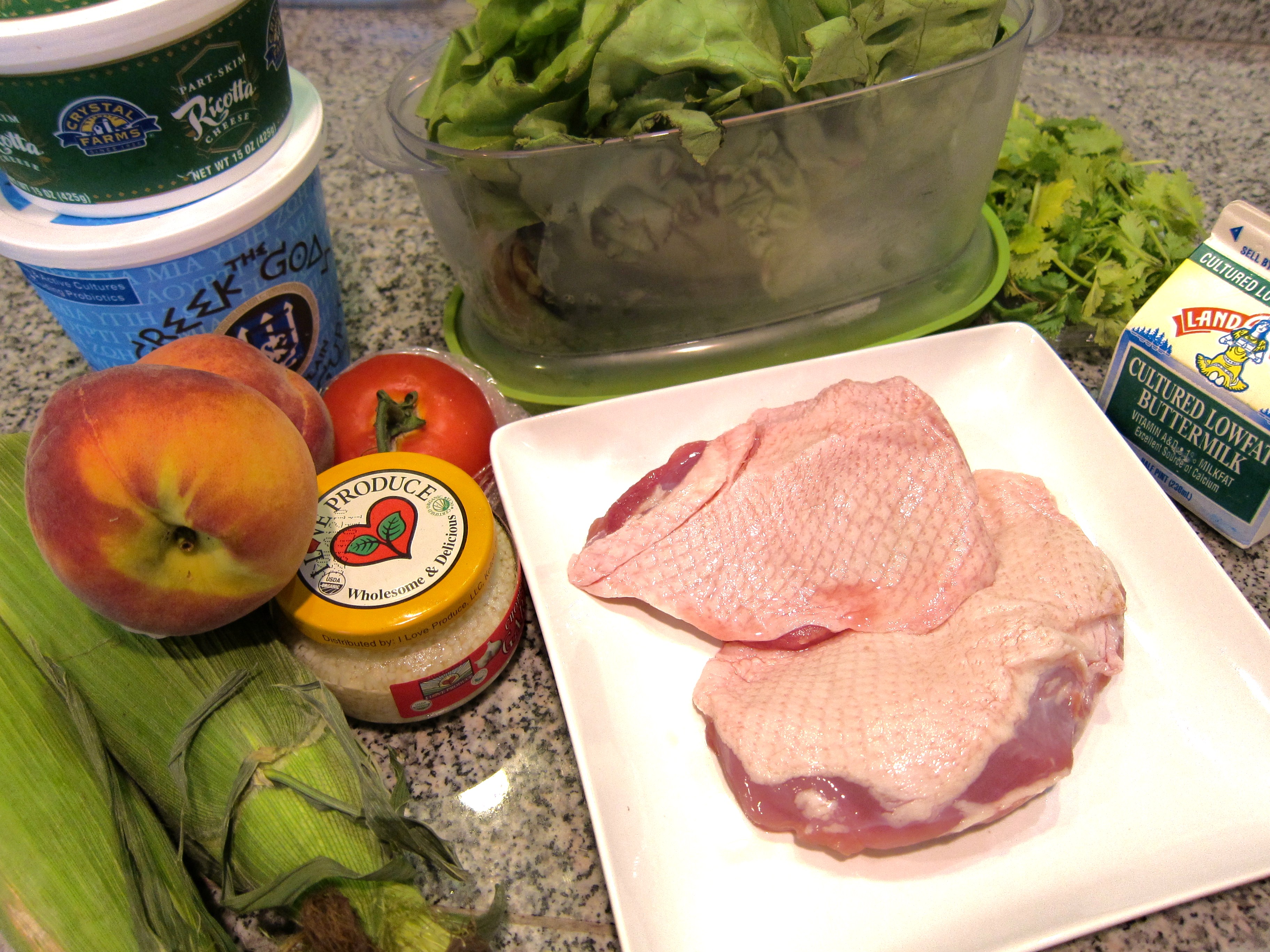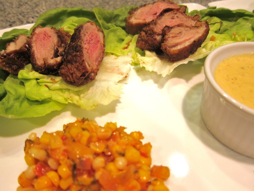 Duck Lettuce Wraps with Corn Salsa and Peach Ricotta Creme – Top Chef Masters Night