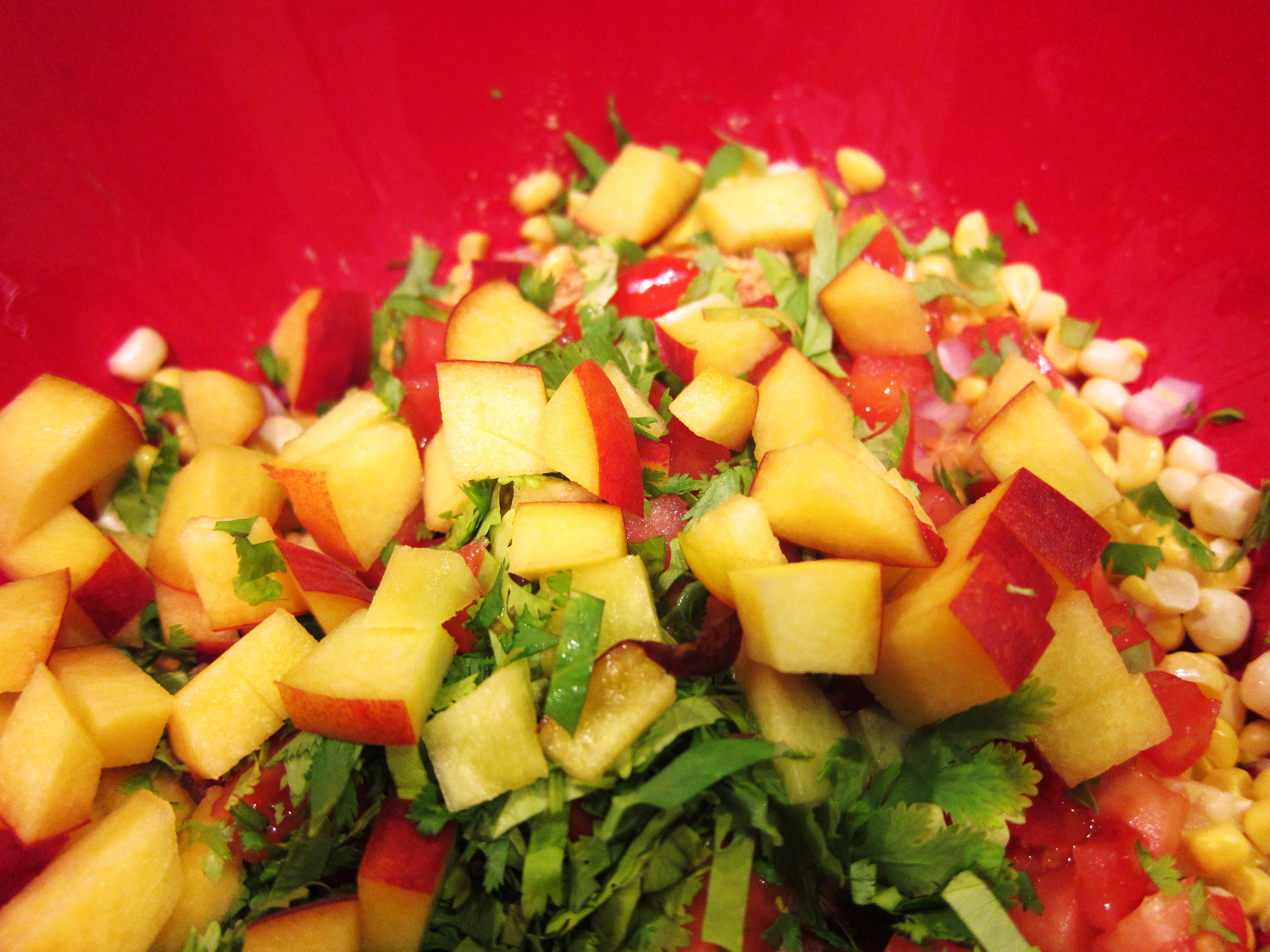 For the peach and corn salsa