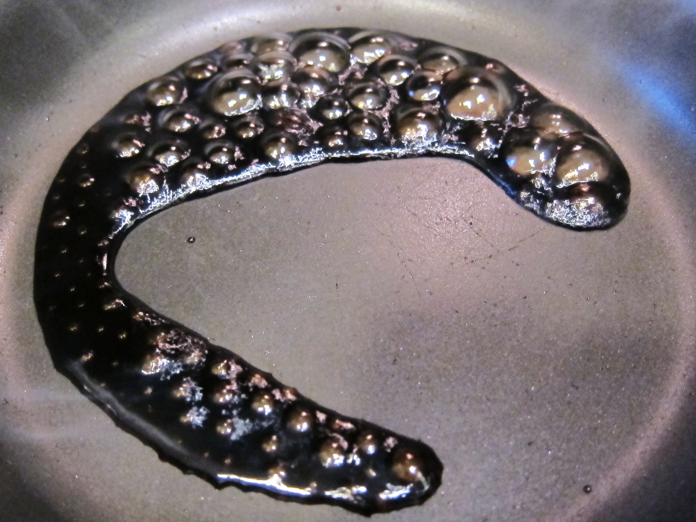 While cheese is browning, make the balsamic syrup. Place balsamic vinegar in a small saute pan and reduce until it thickens into a syrup. WATCH IT CLOSELY! It can overcook quickly and become sticky, gummy balsamic “candy” (not good candy).