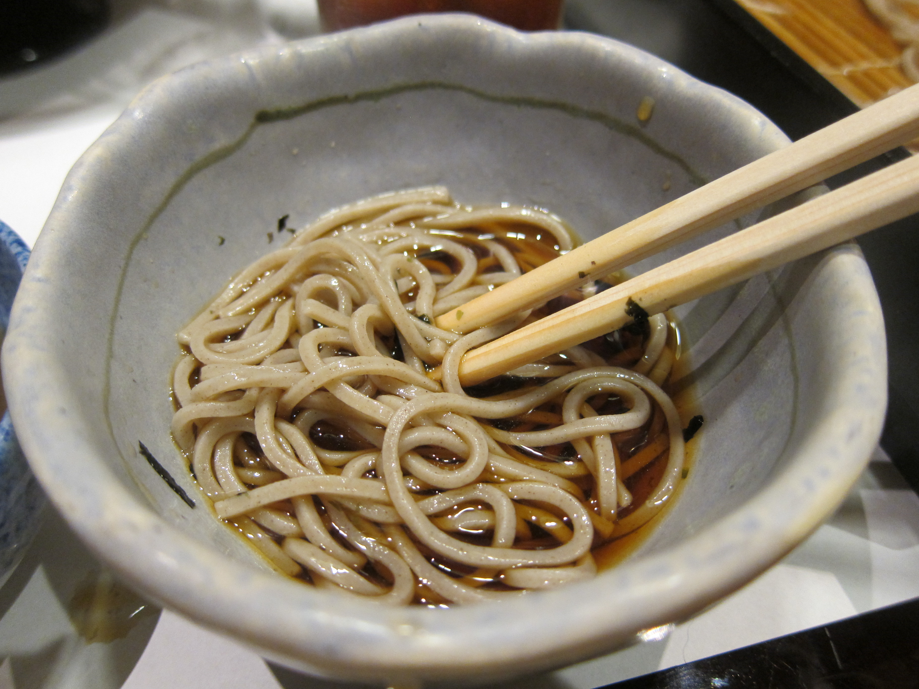On day one, we toured the Ueno Zoo and the Tokyo National Museum until we were all too starving to continue. We stopped at a local restaurant (the name of which I, regrettably, did not record) where we were instructed to remove our shoes and pad over to our sunken wooden booth. It was steamy outside, so the perfect lunch was, of course, cold soba in broth with a little hot veggie and shrimp tempura action.